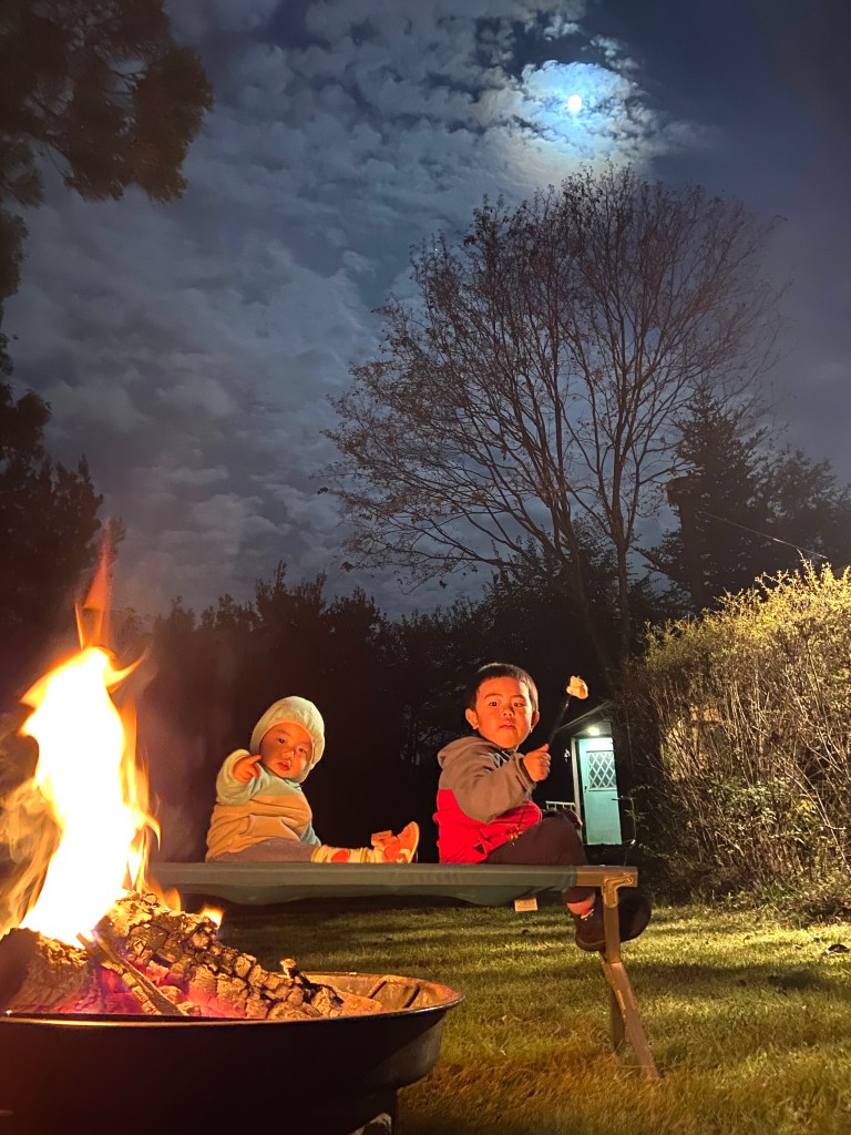外で、焚き火を眺めながら、家族でお話しなんて時間もいいものですね。